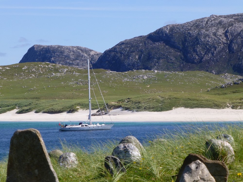 With a lack of berthing facilities at East Loch Tarbert, yachts have to anchor off, clear of the ferry terminal. So a useful tip for any yacht cruising the Hebrides is to have a copy of Caledonian MacBrayne’s ferry timetables on board and time your visit to avoid the MV Hebrides – Slainte Mhath!