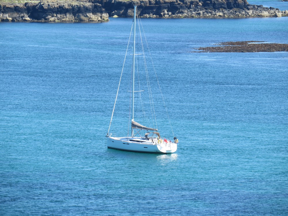 We (my husband and myself) were fortunate enough to get away for a few days at the end of July. Sunday morning saw us setting off from our charter base at Armadale on the Isle of Skye on one our Jeanneau SO 439’s “Explorer of Sleat”. It was an absolutely glorious day without a cloud in sight. There wasn’t much wind though, so we found ourselves motoring past the Small Isles towards Ardnamurchan Point. The Small Isles all have their individual attractions and characters and we passed fairly close to Eigg with the view of the interesting peak of the Sgurr of Eigg changing shape as we passed. Passing close to the wonderful Stephenson Lighthouse at Ardnamurchan, it was onwards down the West Coast of Mull towards the sheltered anchorage at Gometra. There were fabulous views of the Treshnish Isles (more on those later) and we could clearly see Staffa with Iona, Coll and Tiree in the distance.