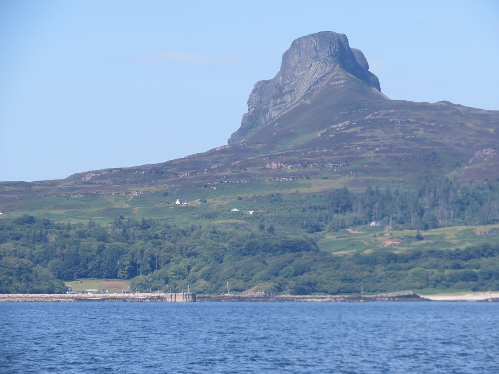 On Tuesday morning we awoke to the sound of rain coming down and the wind whistling past! In Scotland, we say that “if you wait ten minutes then the weather will change” but it took a little longer on this occasion! However, after a leisurely breakfast the rain had stopped, and the wind had dropped so we headed out of Tobermory with two reefs in the main and rolled out half of the jib and were soon heading round Ardnamurchan at 8 knots. “Explorer” and her crew were thoroughly enjoying an exhilarating sail and as we passed Eigg the sun came out and a couple of dolphins passed very close to the boat.
